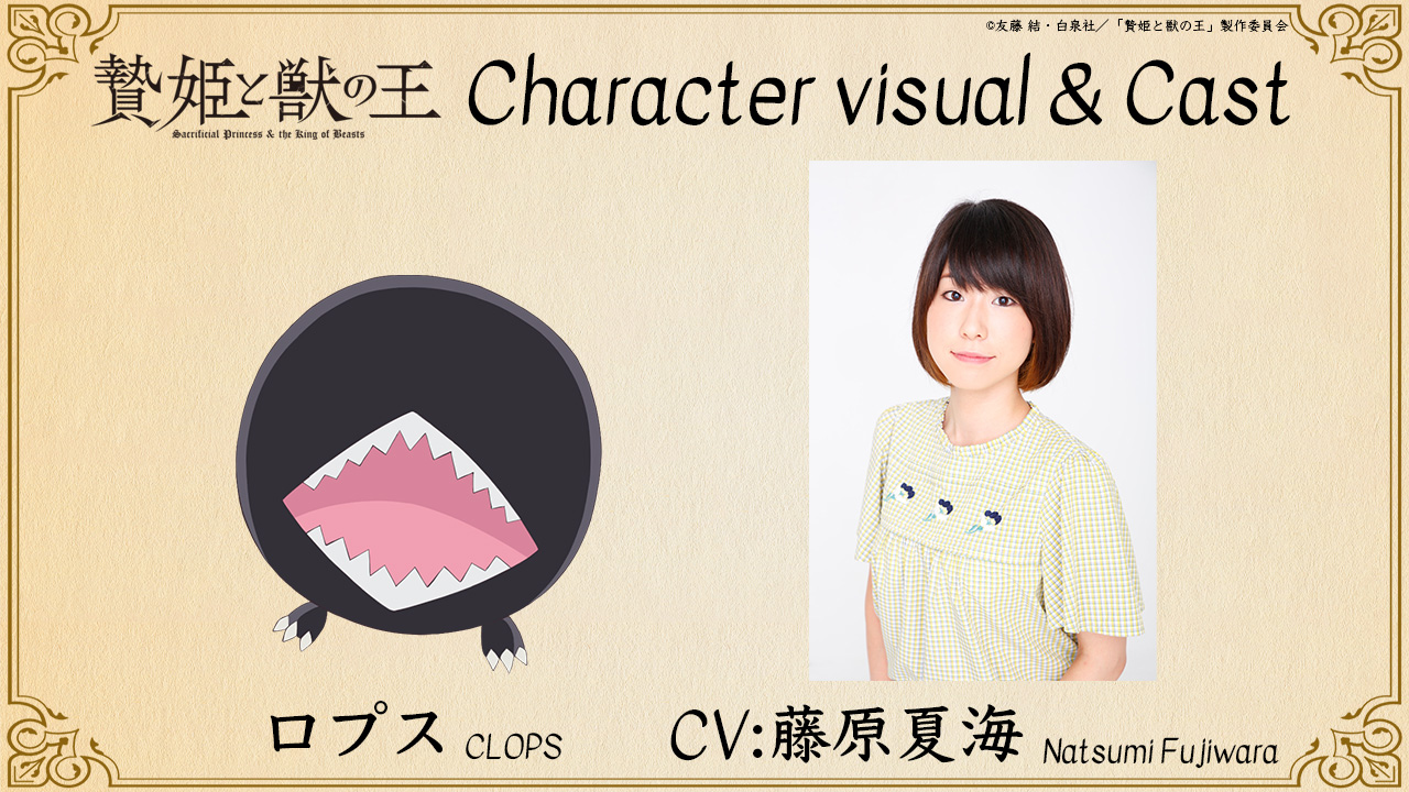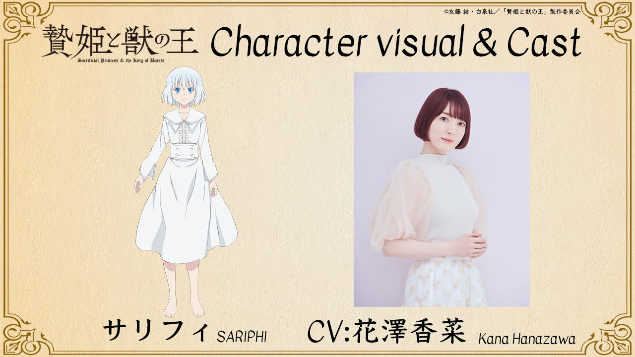 Kana Hanazawa plays Sariphi, while Satoshi Hino will play the King of Beasts, Leonhart. Two more cast members were annoucned, and they are Yuka Nukui as Cy and Natsumi Fujiwara as Clops.