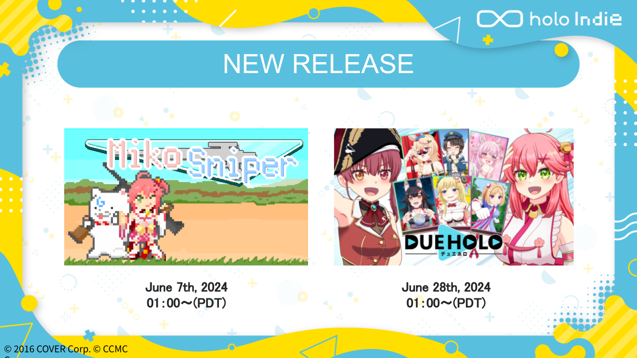 holo Indie will add two new games to its roster this June: hololive‘s Sakura Miko and her fanbase 35P feature in the new Miko Sniper game, launching on June 7, 2024. Meanwhile, DUEHOLO launches on June 28, featuring Sakura Miko, Aki Rosenthal, Oozora Subaru, Ookami Mio, Houshou Marine, Tsunomaki Watame, Omaru Polka, Hakui Koyori as they battle against holomem. Readers can get more information below and check out March and April’s holo Indie game releases here.